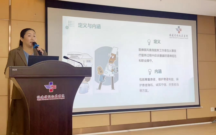 为弘扬医学伦理道德,树立正确的医疗观念与行为规范,激励医务人员积极培育高尚的医德医风,8月20日下午,国产自拍av2024年第二期道德讲堂开讲,由第五党支部、五区主管护师陈冰主讲《培养良好医德医风,你我同行》。