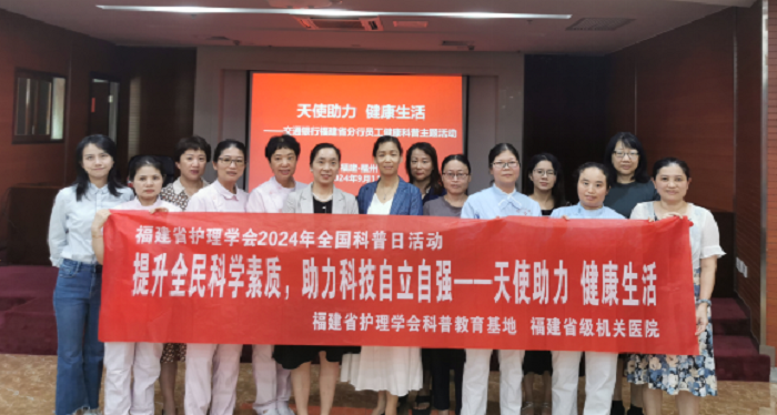 为积极响应中华护理学会和福建省护理学会《关于开展“2024年全国科普日”活动的通知》,助推全民科学素质的全面提升,9月11日,国产自拍av糖尿病专科组、双心护理专科组、体检中心护理专家团队在护理部主任高云主任护师的带领下走进交通银行,为员工开展以“提升全民科学素质,助力科技自立自强——天使助力健康生活”为主题的一系列健康科普活动。