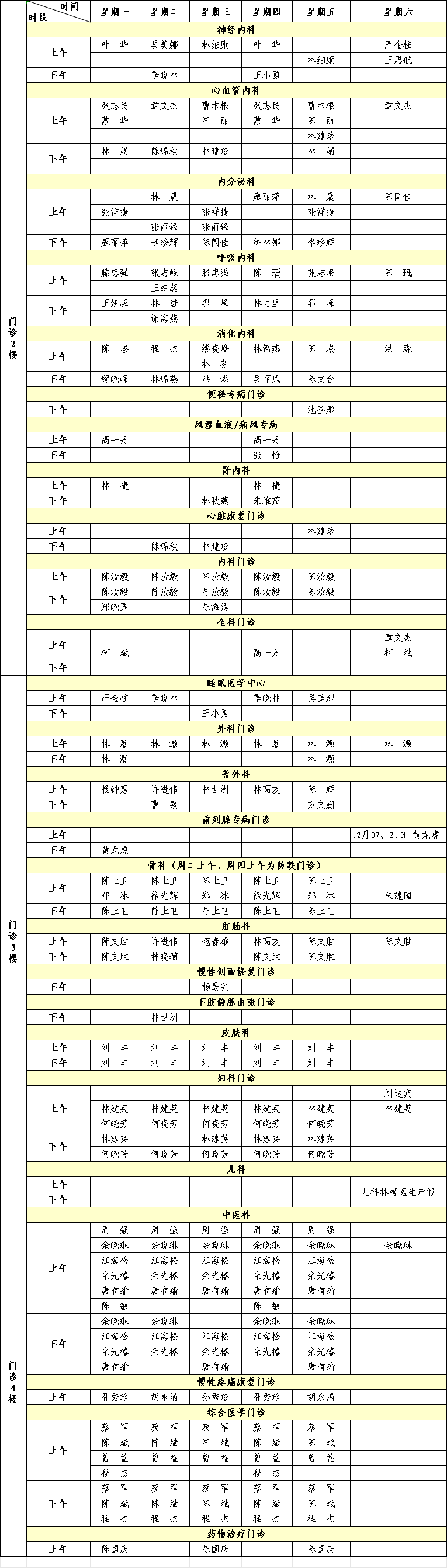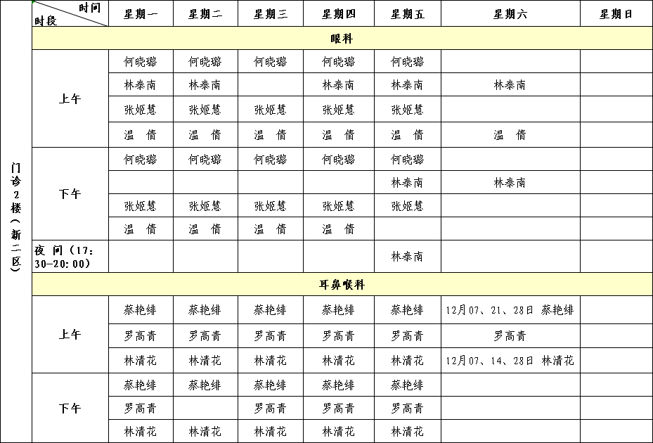 国产自拍av 2024年12月专家门诊排班表来啦!有需要的小伙伴赶紧收藏。