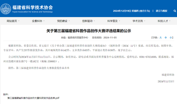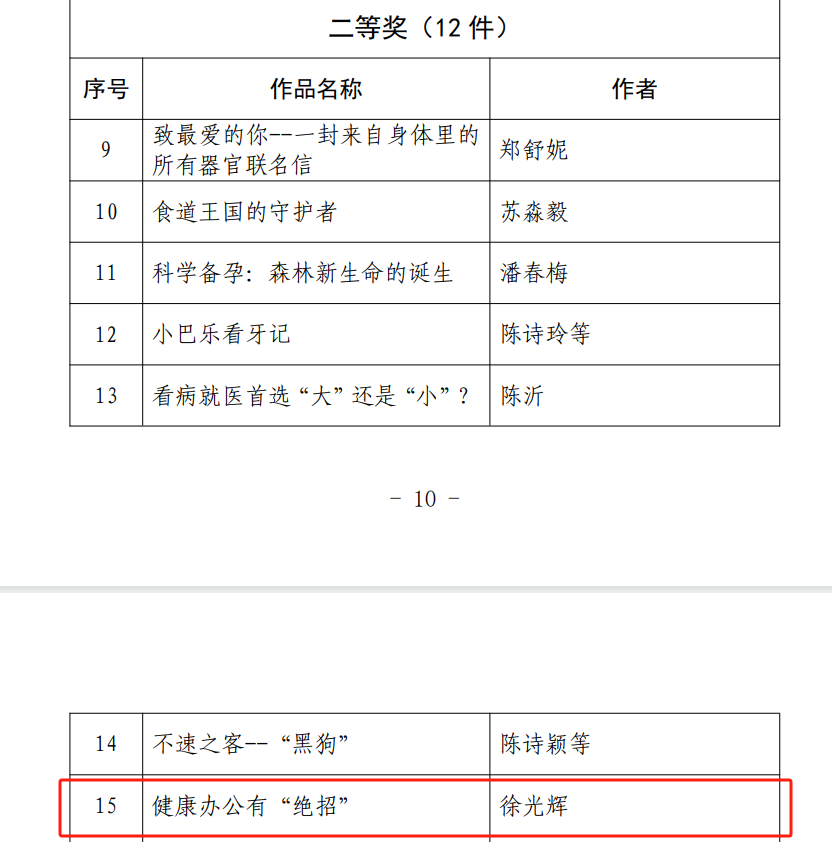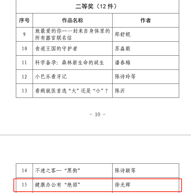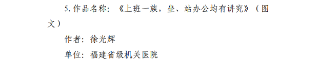 外科徐光辉科普文章《健康办公有“绝招”》获第三届福建省科普作品创作大赛二等奖。