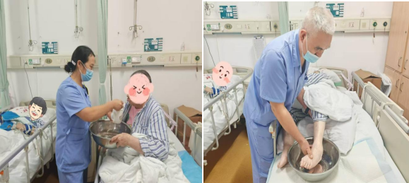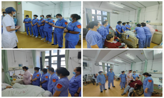 在日常工作中,护理团队以患者为中心,采用“责任组长-责任护士-护理员”的三级责任制模式,即一名责任护士协同一名护理员在责任组长的指导下,共同照护所负责的患者,实施“责任护士+护理员”双交班模式,从患者入院接诊、生活照护、运送陪检、订餐用餐等各个环节,为患者提供全程、全面、规范、专业的照护服务。同时,病区形成了“主管医生-责任护士-护理员”一体化的工作新格局,逐步实现了医疗护理与生活照护的有机结合,不断提升护理服务质量。
