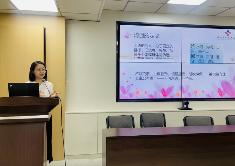 讲座中,江灵芝结合个人丰富的临床实践经验和典型案例,为大家介绍一般人际沟通的方式和原则,如认同、移情、倾听、询问、反馈等。她特别强调了非言语沟通在信息传递中的不可或缺性,诸如肢体语言、面部表情及眼神交流等,均能在无形中加深沟通的深度与广度。针对医患沟通这一独特且敏感的领域,她介绍,医患沟通远非单纯的信息交换,而是一场深刻的情感联结与理解共鸣的构建过程。医疗互动中,诚信、平等、设身处地的换位思考以及严格的保密原则不可或缺。医护人员需展现出超越职责的耐心、深刻的同理心以及尊重,并以此作为赢得患者信赖与积极配合的钥匙。