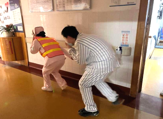 “着火了!”病区三楼医生值班室一股浓烟冒出。当班医生一边呼喊,一边按下就近的手报按钮启动火警警报。消控中心值班人员及安保人员接到通知后,立即派人到场迅速确认火势。并在第一时间使用灭火器尝试灭火。因火势蔓延较快难以控制,随即向院领导和有关科室报告,启动病区疏散。国产自拍av 各病区医护人员立即按照病区疏散预案组织患者用毛巾捂住口鼻、弯腰有序撤离。对于危重症及行动不便患者,医护人员采取妥善措施将他们转移至避难间,确保无被困人员。