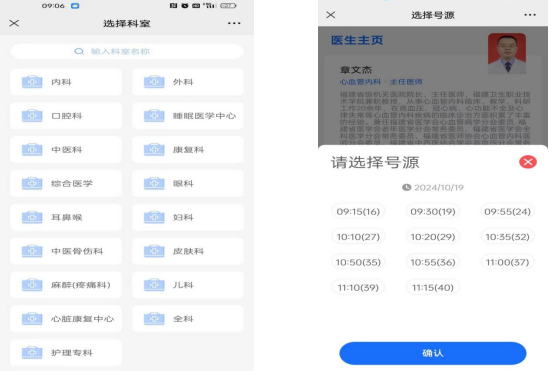 3.根据您的需求,选择科室、医生、就诊时间。(首次就诊患者需去院内建档后绑卡)