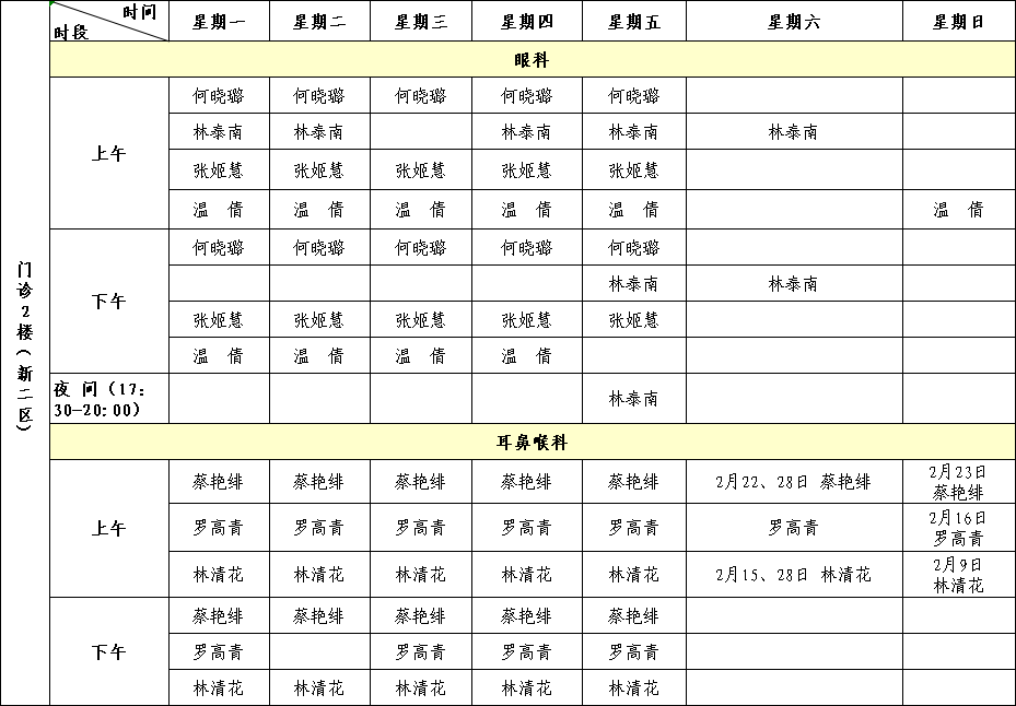 国产自拍av 2025年2月专家门诊排班表来啦!有需要的小伙伴赶紧收藏。