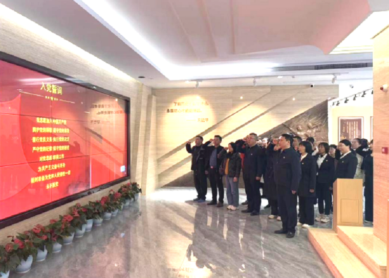 随后,由党委副书记黄纯领誓,带领全体党员重温入党誓词。“我志愿加入中国共产党……随时准备为党和人民牺牲一切,永不叛党”,铿锵有力的声音回荡在革命英烈事迹陈列馆,重温入党时的庄严承诺,在党旗下接受初心的淬炼和洗礼。