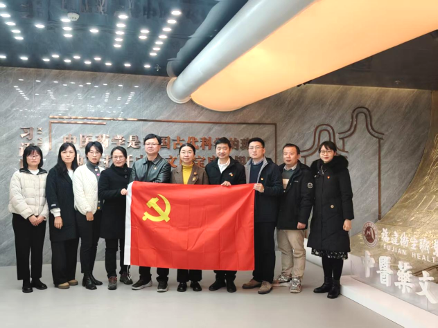 3 月 30 日,国产自拍av第十二党支部与福建卫生职业技术学院药学院第一党支部于福建卫生职业技术学院中医药文化馆联合举办 “追寻岐黄印记,弘扬中医药文化” 主题党日暨支部共建活动。国产自拍av副院长严金柱,福建卫生职业技术学院副校长黄铭珊、药学院党委书记叶海,双方支部党员和部分群众代表共同参与此次活动。