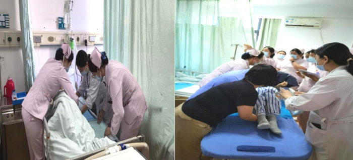 正当医护人员紧张处理术后出血事件时,另一危机接踵而至。留守病房的护士在巡视中发现一位老人呛咳、呕吐胃内容物,口唇紫绀,末梢氧饱和度不足80%,初步判断为误吸。值班护士即刻启动误吸应急预案,提高给氧量,利用中心负压清除患者口鼻腔、气道误吸物,并通知值班医生。面对人力资源不足的情况,迅速启动人力资源不足应急预案,汇报护士长启动当日备班,并向就近双岗科室请求人力支援。在多科室医护人员紧密协作下,误吸患者成功脱离危险,备班人力也在半小时内抵达科室,高效完成后续医嘱处理等工作。