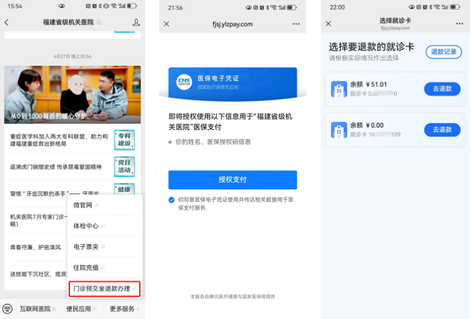 ①退款流程:患者微信关注【国产自拍av 】公众号,右下角【更多服务】里面的【门诊预交金退款办理】入口,完成授权认证后进入退款申请入口。