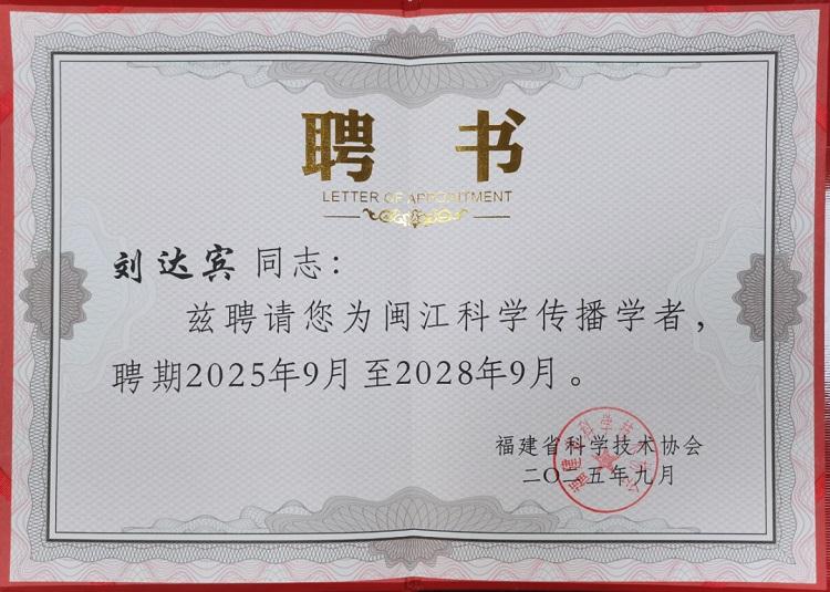 ▲刘达宾主任医师获聘“闽江科学传播学者”