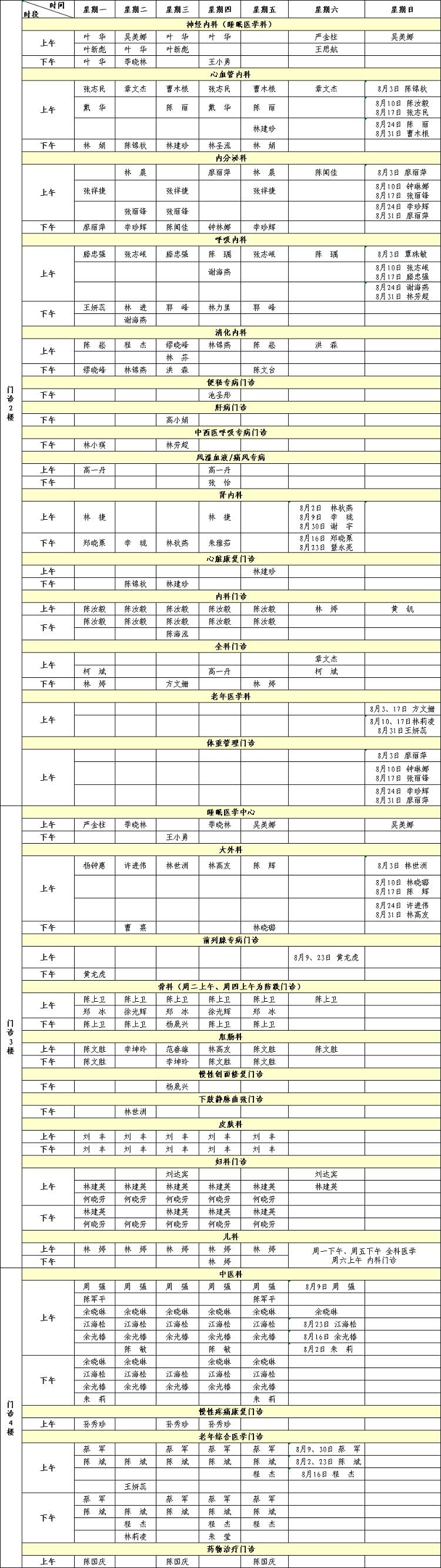 国产自拍av 2025年8月专家门诊排班表来啦!有需要的小伙伴赶紧收藏。