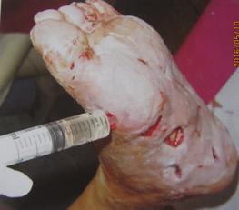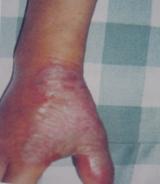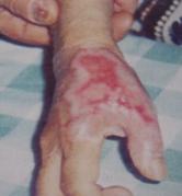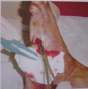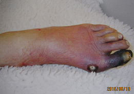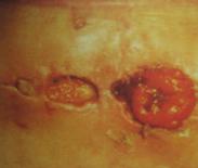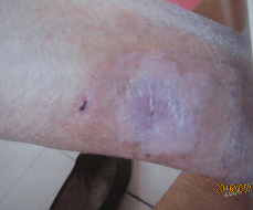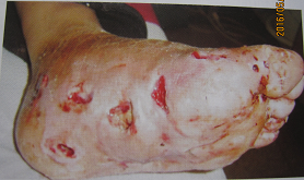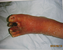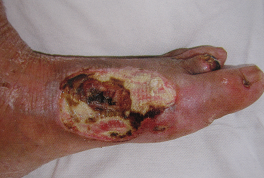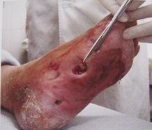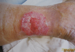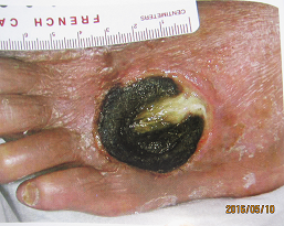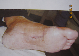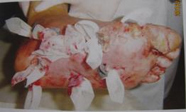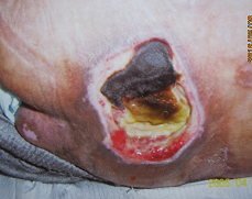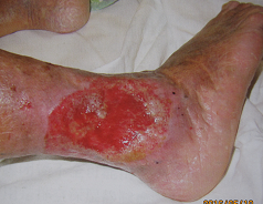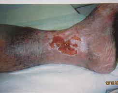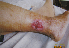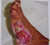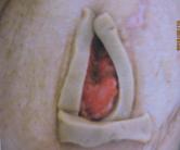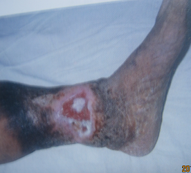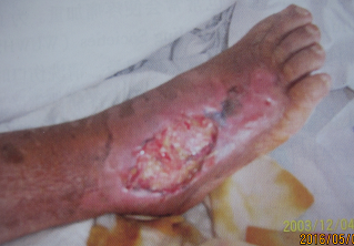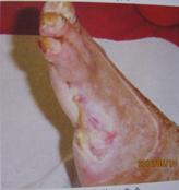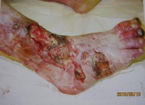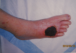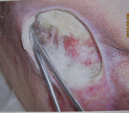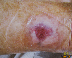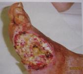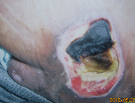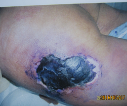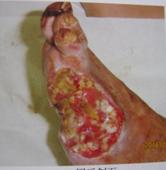 图2-5皮肤变紫,深部组织受损 图2-6黑痂覆盖伤口,布克分级或分期