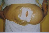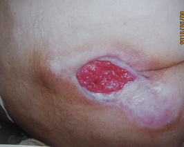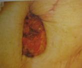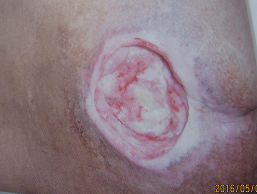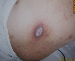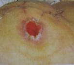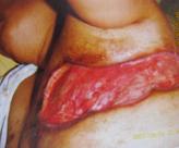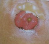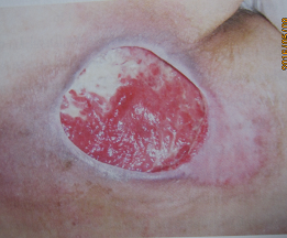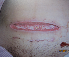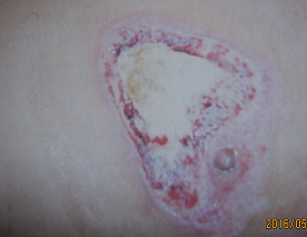图2-3全皮层损伤的腹部裂开伤口图 图2-4 全皮层受损的Ⅳ期压疮