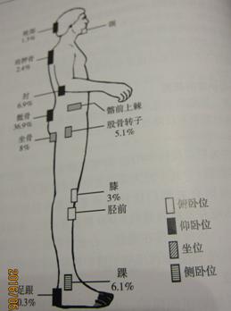 3.摩擦力在潮湿环境中成倍增加,加上病人常需卧床,压力与摩擦力等因素都是导致骶尾部压疮的主要原因。