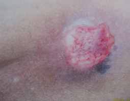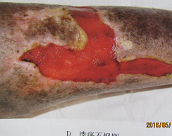 伤口红色肉芽组织无颗粒状,肉芽表面光滑 |