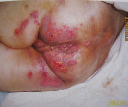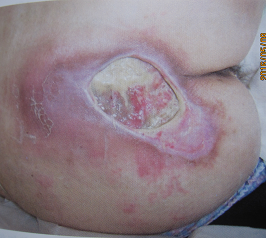Ⅲ度:肛周皮肤破溃深达肌层或破溃蔓延至尾骶部,会阴及腹股沟等,或原有压疮加重。