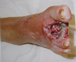 (1)感觉系统受损:由于神经受损,病人感觉障碍失去保护性反应,无法自我保护伤口。如下肢神经功能受损的糖尿病病人,由于失去保护性反应,容易反复发生糖尿病足。