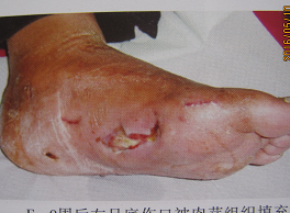 图2-9伤口基底呈黑色 图2-10混合型伤口(含不同颜色组织)
